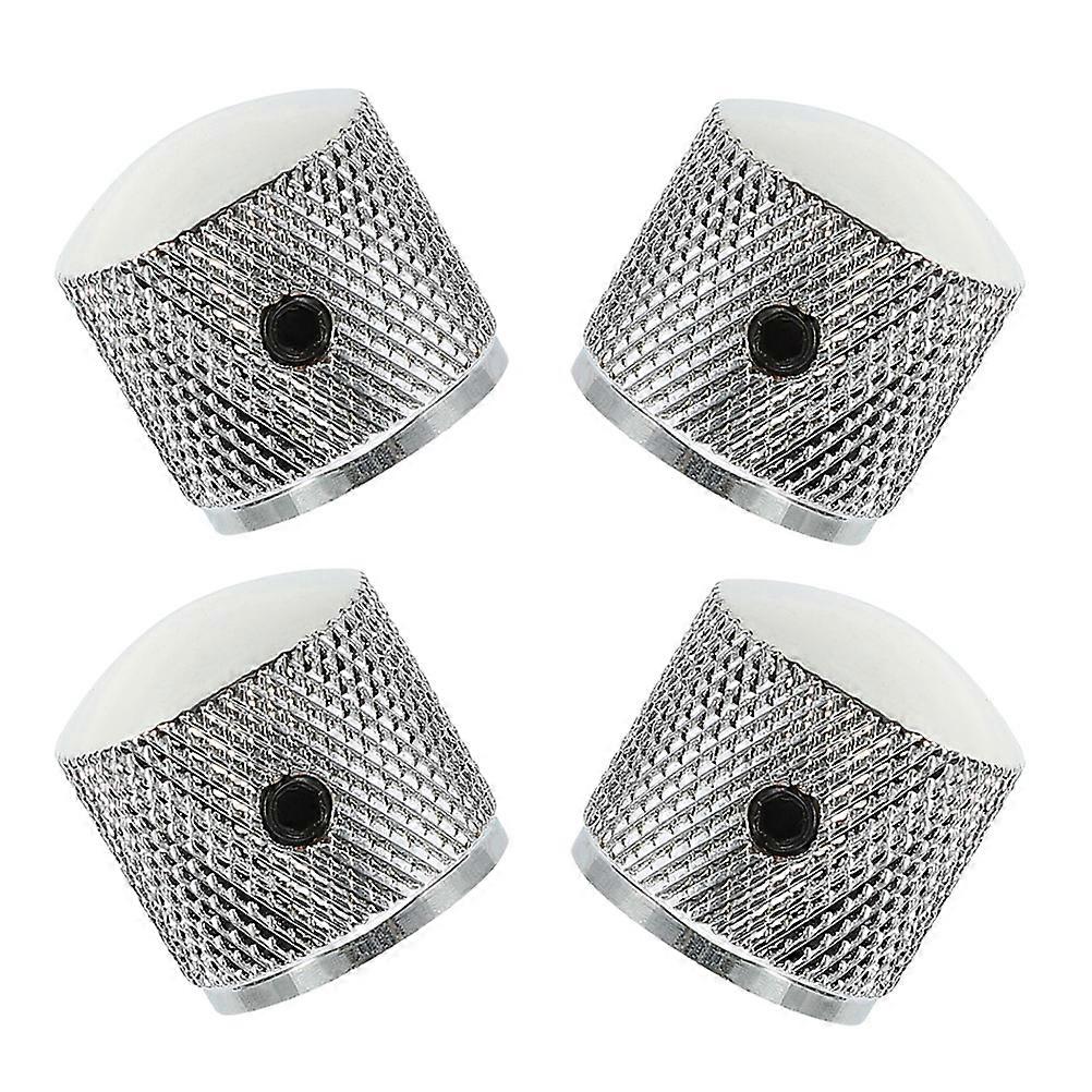 Metal potentiometer cap for guitar and bass volume knobs and tone knobs. This guitar volume knob is made of metal. Can be use to replace the broken knob. Widely used in electric guitar, bass. This knob is the perfect choice for guitar and bass enthusiasts looking for both style and functionality. Features -Color:Silver -Material:Metal -Size:1.70X1.70X1.70cm/0.67X0.67X0.67in - These knobs are with excellent texture. Compatible with most electric guitars or basses, and other instruments. - With simple structure, these guitar volume knobs are very easy for you to install and remove. - The guitar volume knob comes with simple design, which allows you to adjust it easily and quickly. - These knobs are made of metal, heavy sturdy, and better match the guitar overall look. - It's a perfect musical instrument lovers, and the color is suitable for various guitars. Package list: 4 x Guitar Knobs