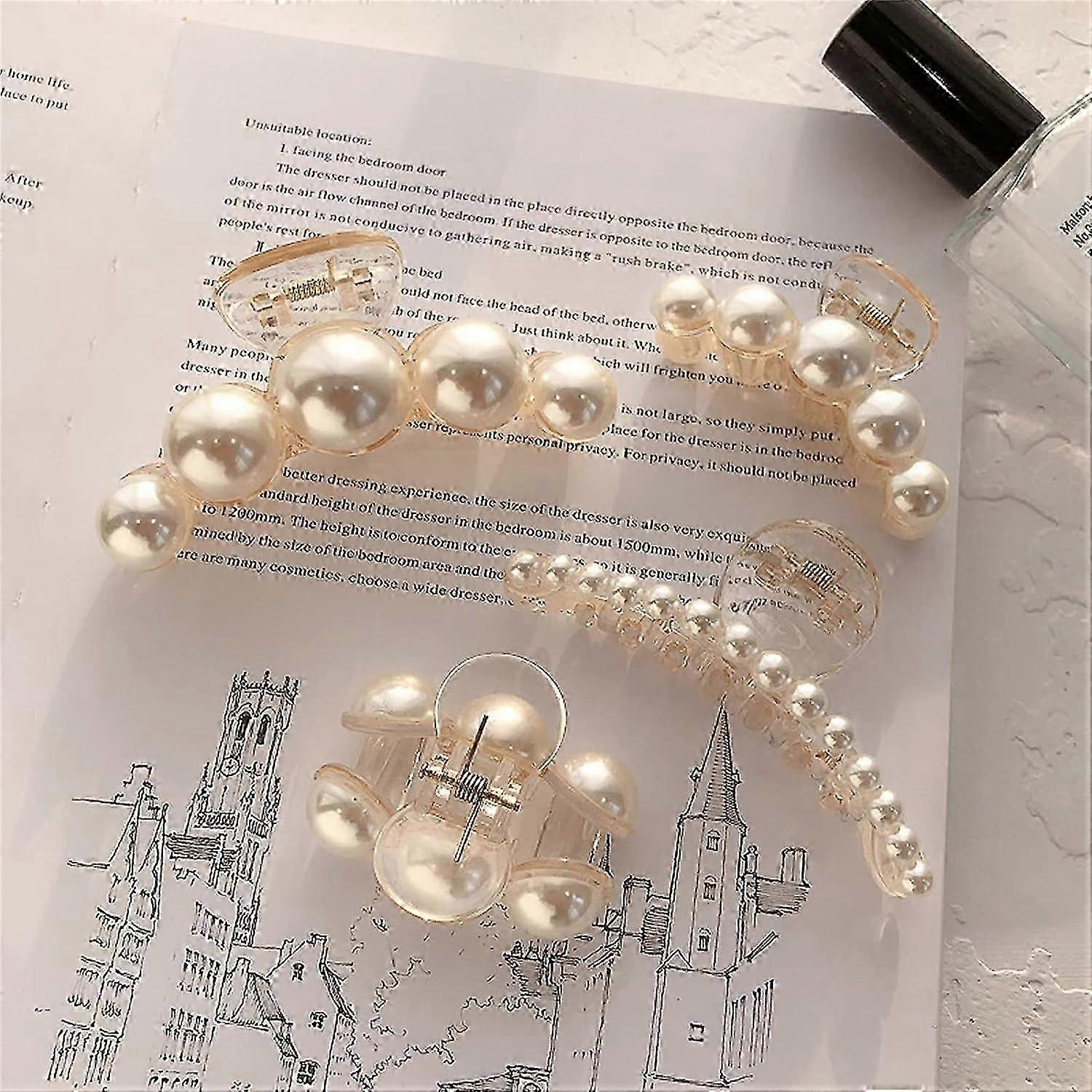 4 Pcs Pearl Hair Claw Clips, Strong Hold Hair Jaw Clips, Nonslip Barrettes Birthday Business Gift Hair Accessories