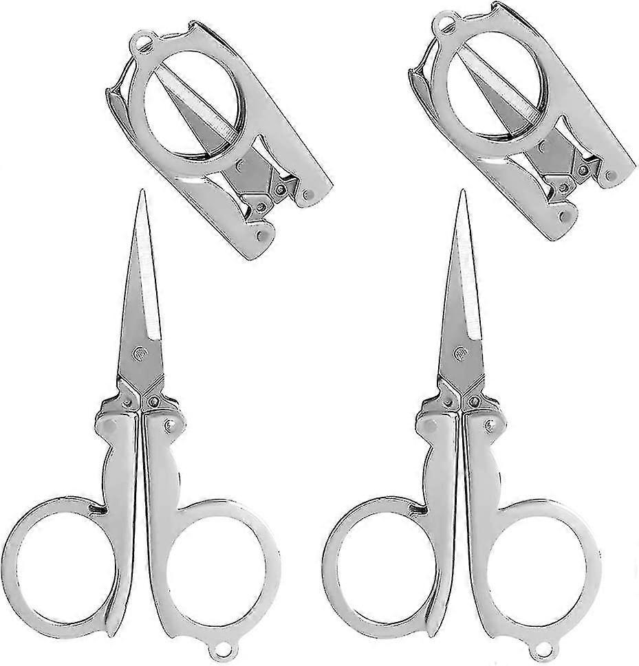 4pcs Stainless Steel Folding Scissors, 4 Inch/10cm Mini Small Paper Scissors Portable Foldable Travel Scissors Metal Scissors For Paper Craft, Sewing4