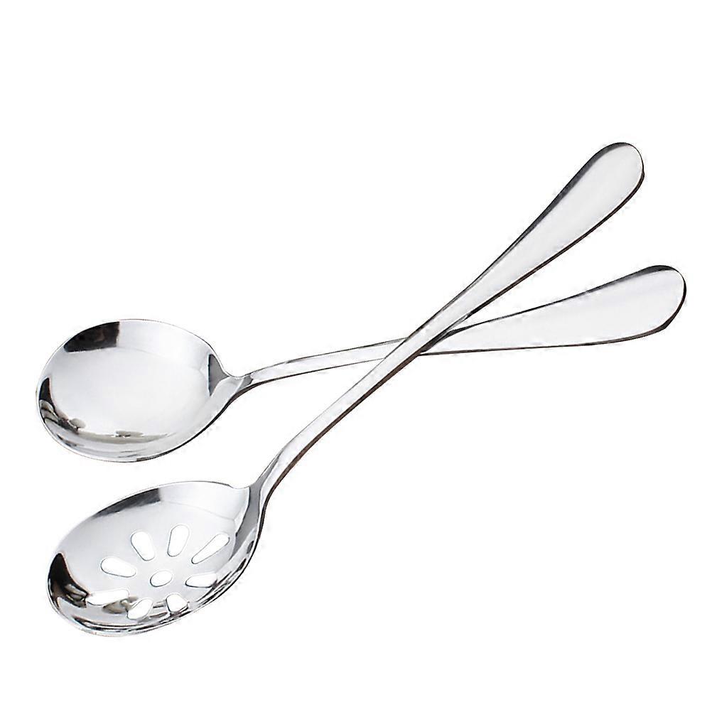 This stainless steel spoon set is made from serving western food especially, including 2 pcs small spoon anf 2 pcs colanders, perfect for basting meats, skimming fat from braised dishes or broths, stirring soups and stews, and transferring cooked foods for serving. Crafted from stainless steel, these tools are an essential addition to your kitchen. Features - Color: Silver. - Material: Stainless steel. - Size: 19.7 x 5 x 2.5 - This stainless steel spoon set is made from serving western food especially, including 2 pcs small spoon anf 2 pcs colanders - These spoons are built to withstand constant use. The spoons in this set are dishwasher safe, ensuring it'll be easy to them after use. - Providing both solid and perforated spoon surfaces, this set of spoons offers the best of both worlds. Each spoon in the set features thicken on the handle that prevents the spoon from slipping into a bowl. - Essential to any kitchen, these spoons are commercial quality but also perfect for a home chef. Package list: 4 x Stainless Steel Spoon