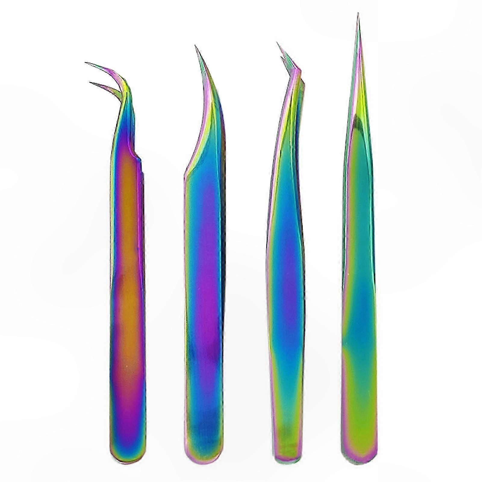 4 Pieces Stainless Steel Eyelash Tweezers with Colorful Design for Professional Use