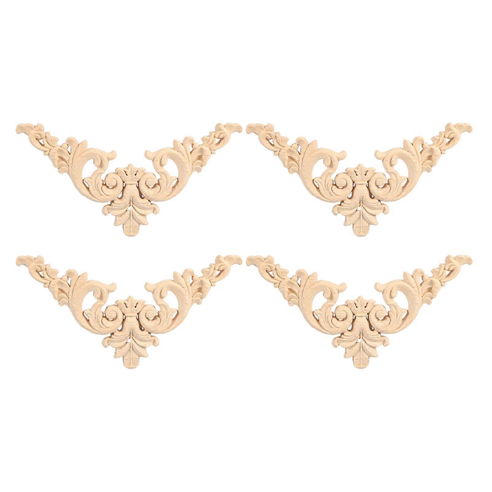 4PCS Rubber Wood Carved Corner Onlay Applique Furniture Flower Shape Unpainted 12x 12cm