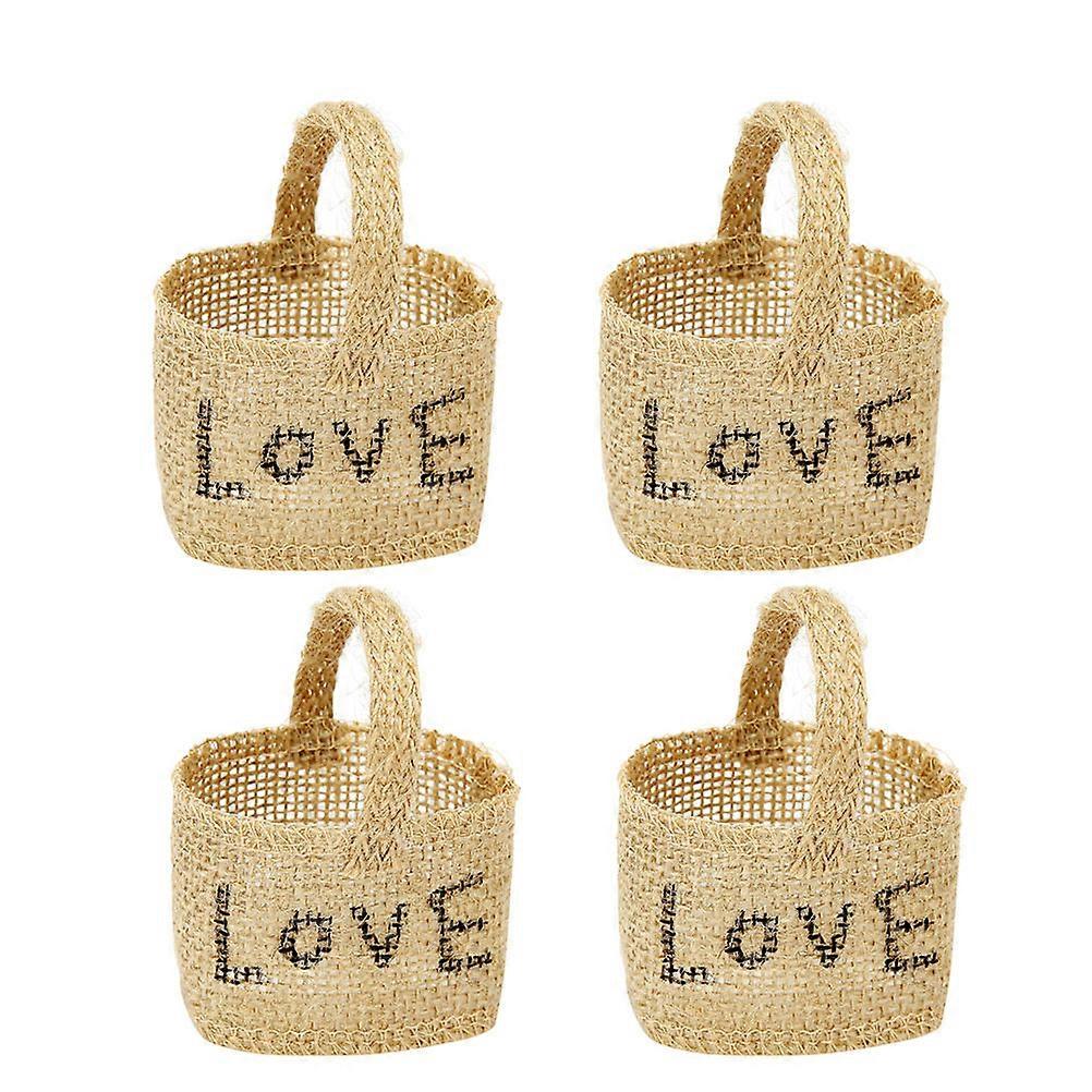 4pcs Linen Love Pattern Gift Bags, Small Flower Baskets for Wedding Candy Storage, Lightweight Decorative Storage Baskets for Party, Graduation, and