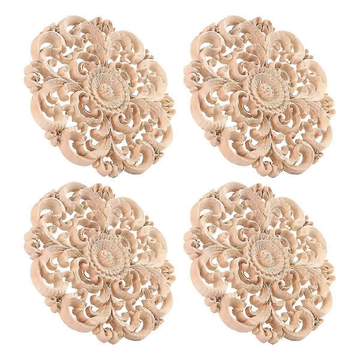 4Pcs Wooden Carved Onlay Applique Unpainted Wood Applique Vintage European Style Carved Decal for Fu