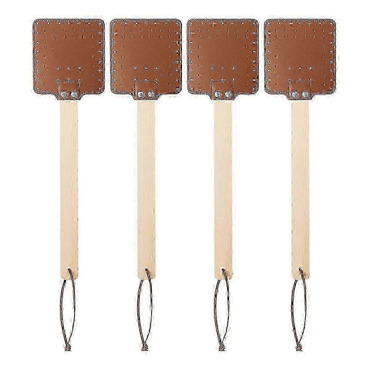 4 Pieces 17.3 Inch Fly Swatter Leather Fly Swatter Long Fly Swatter Manual Fly Swatter Wood Handle Bug Swatter