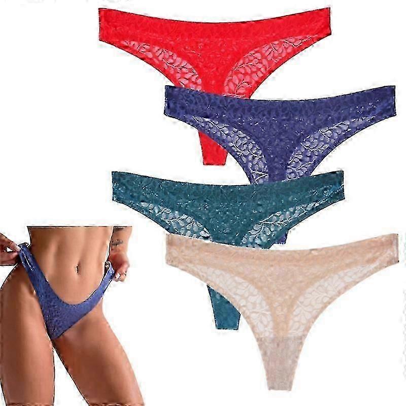 4pcs Women's Pure Cotton Sexy Jacquard Seamless Adhesive T-shaped Underwear