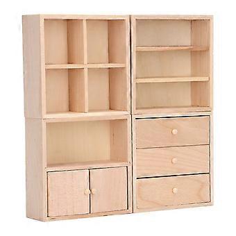 4 Pcs 1/12 Doll House Cabinet Set Simple Design Practical Lifelike Miniature Wooden Dollhouse Furniture Cabinet