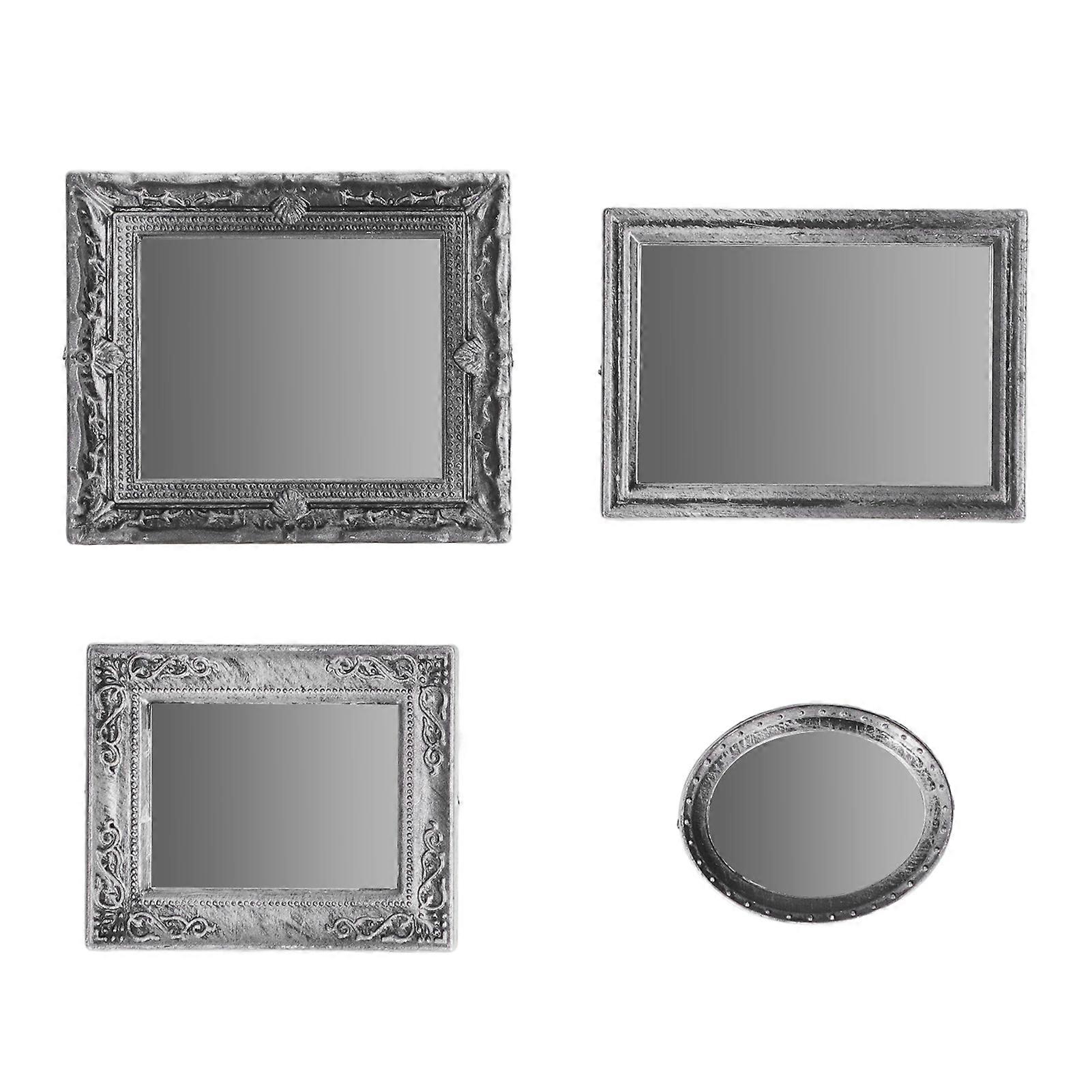 4pcs 1:12 Dollhouse Mirror Set Classic Style Exquisite Different Carving Frame Miniature Doll House Accessories