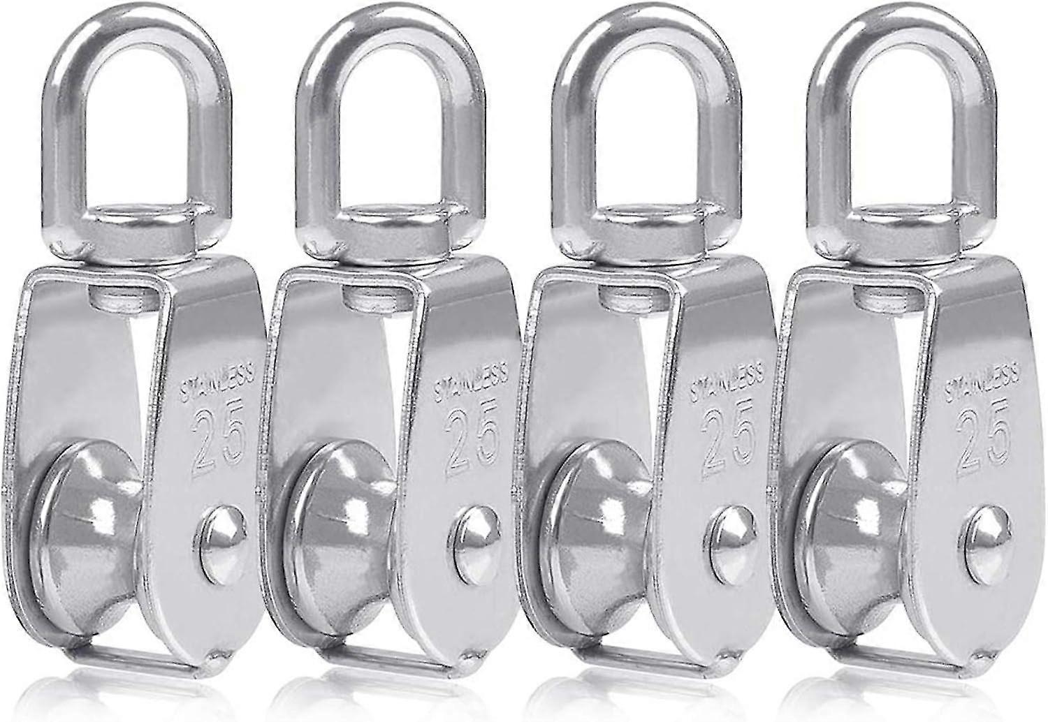 4pcs 25mm Silver 304 Stainless Steel One-piece Blocks, One-piece Crane For M25 Single Hook Pulley Pulley Swivel Paper Load 150kg-QJWL