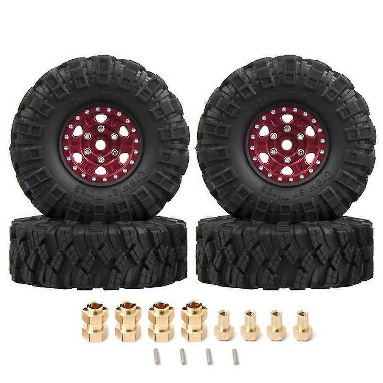 4Pcs 62X21mm 1.0 Inch Metal Beadlock Wheel Rim Tire Set for 1/18 1/24 RC Crawler Car Axial SCX24 AX2