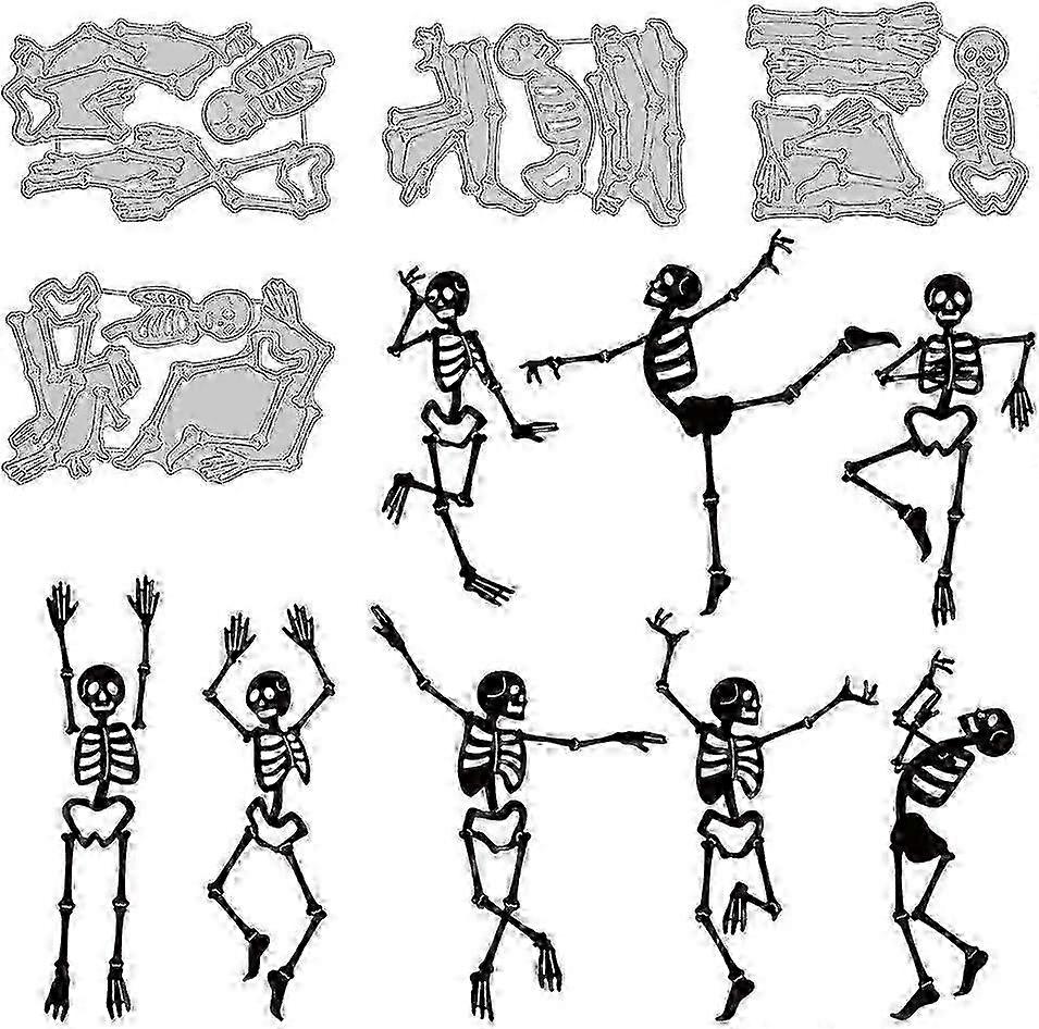 4PCS 8 Styles Dancing Skeleton Carbon Steel Cutting Dies Stencils Day of The Dead Skeleton Metal Embossing Stencil for DIY Scrapbooking Album Pap