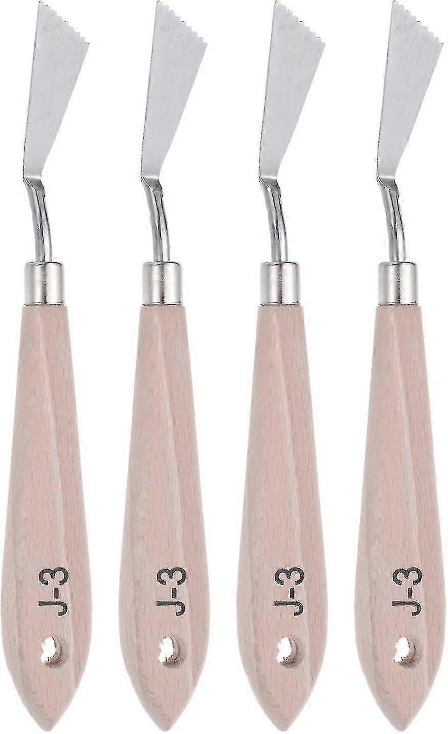 4pcs #j-3 Palette Knife 15mm Knife Width Solid Wood Handle Stainless Steel Painting Mixing Scraper Pallet Knife Spatula For Oil Acrylic Painting