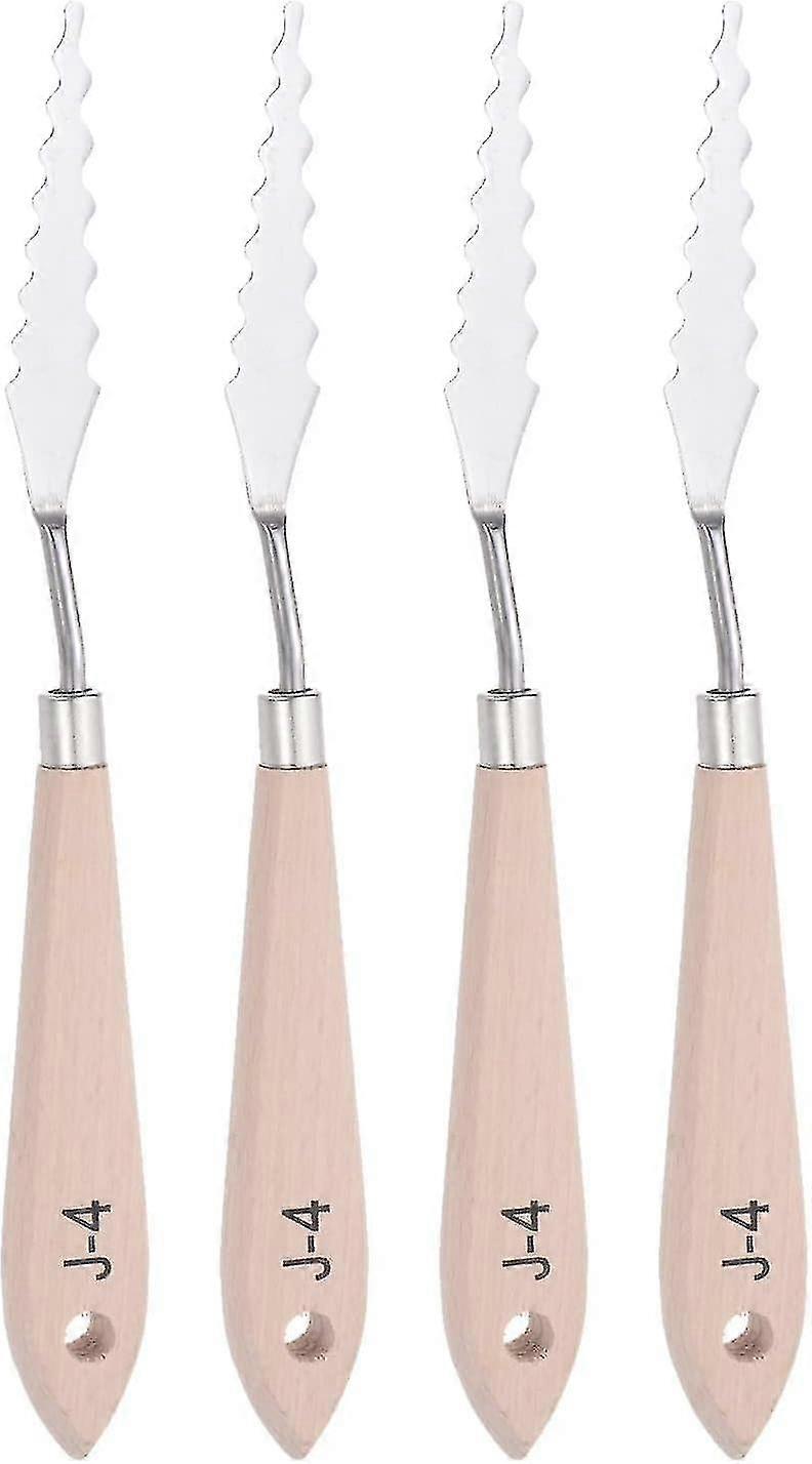 4pcs #j-4 Palette Knife 15mm Knife Width Solid Wood Handle Stainless Steel Painting Mixing Scraper Pallet Knife Spatula For Oil Acrylic Painting