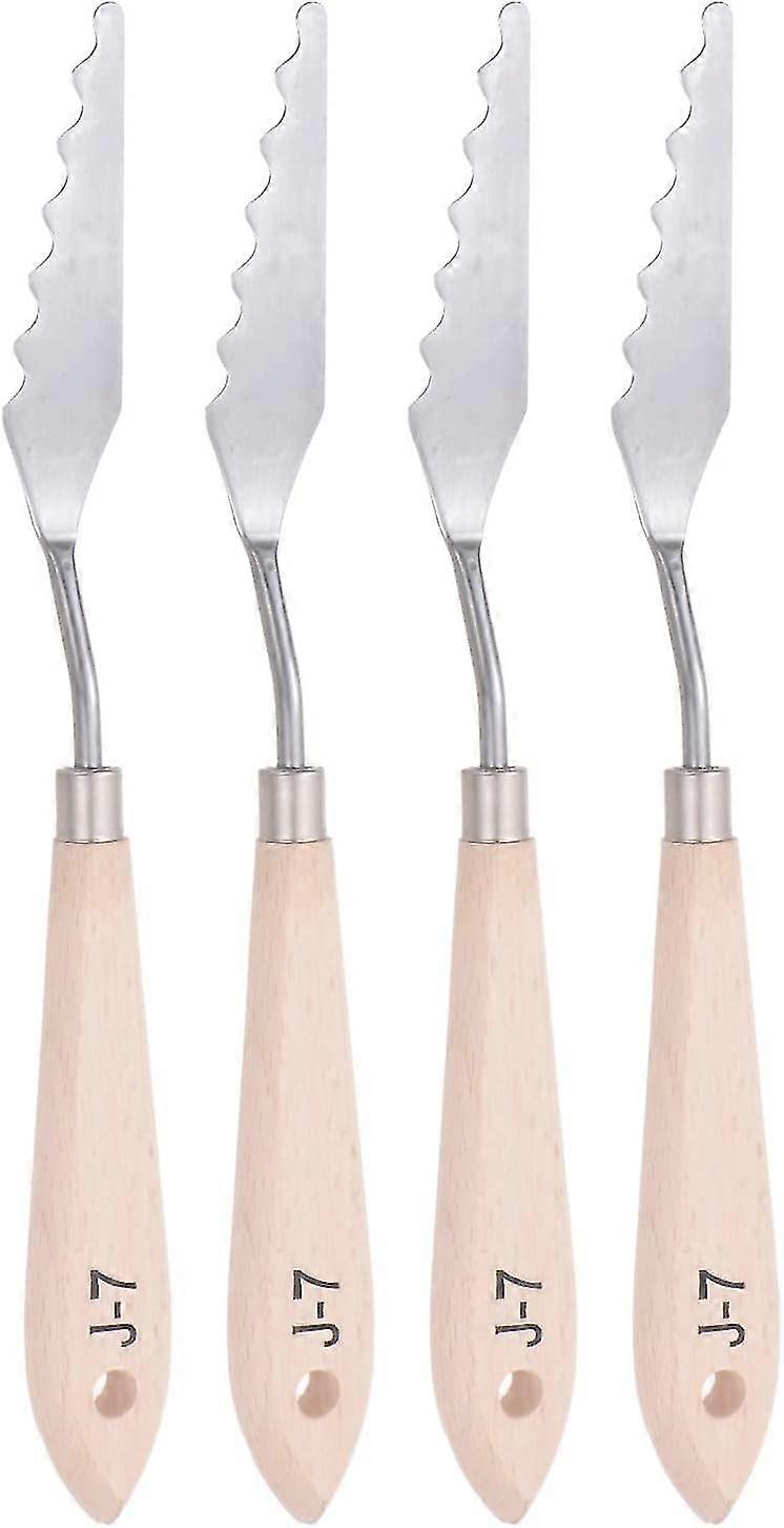 4pcs #j-7 Palette Knife 18mm Knife Width Solid Wood Handle Stainless Steel Painting Mixing Scraper Pallet Knife Spatula For Oil Acrylic Painting