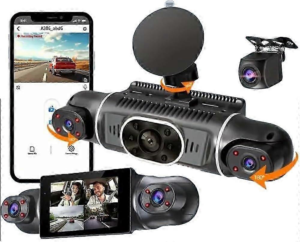 4 Channel Dash Cam For Cars,4 * 1080P WIFI APP Control 360Degree 3 inch Car DVR