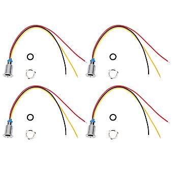 4 Sets PreWired Round LEDs, Brass Chrome Plated LED Pre-Wired Round Waterproof 2Color Indicator Light Common Anode 10mm 1224V(Red and Yellow) J5121