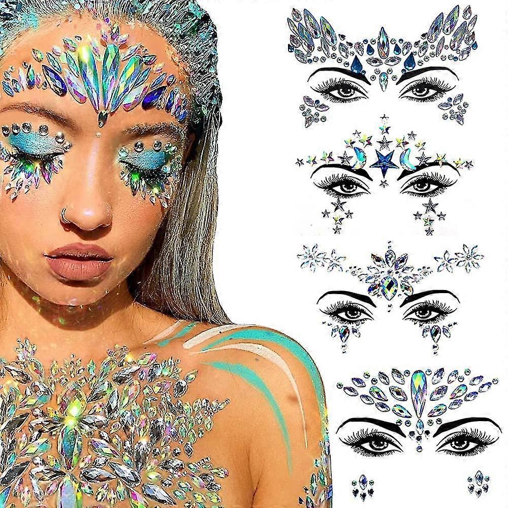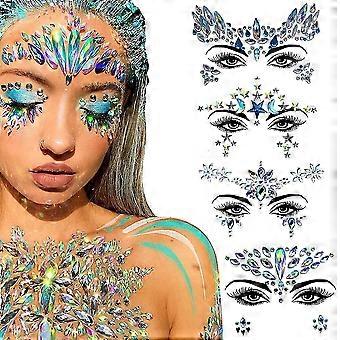 4 Sets Face Jewels Tattoo Stickers , Rhinestone Rave Party Face Gems Glitter, Festival Accessories Temporary Tattoos For Women And Girls-MXBC