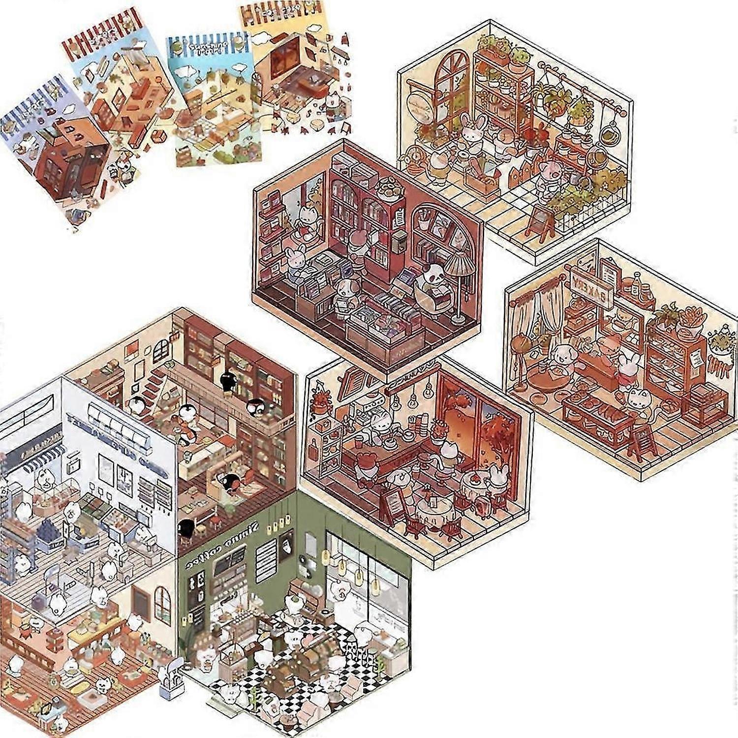 4 Sets DIY 3D House Stickers, Cute Cartoon Scene Stickers, Fun DIY Stickers Scene Make Your Own Supermarket