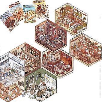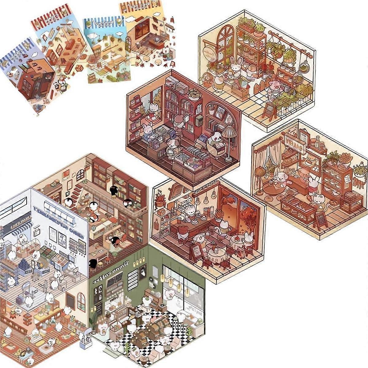 4 Sets DIY 3D House Stickers, Cute Cartoon Scene Stickers, Fun DIY Stickers Scene Make Your Own Sup