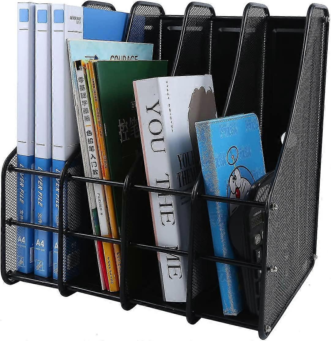 4 Compartments Mesh Desk Organiser Magazine File Rack Holder, Metal Desk Book Sorter Storage Shelf For Home Office