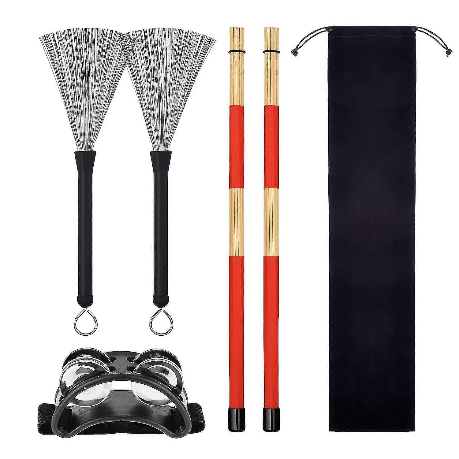 4pcs Drum Professional Lightweight Wooden Acoustic Drum Brushes Drum Sticks Tools Kit For Lovers Dr