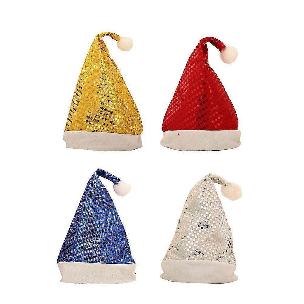 4pcs Glitter Santa Hat Christmas Sequins Decoration Headdress Headwear Decoration For Adults Party Supplies (mixed Style)