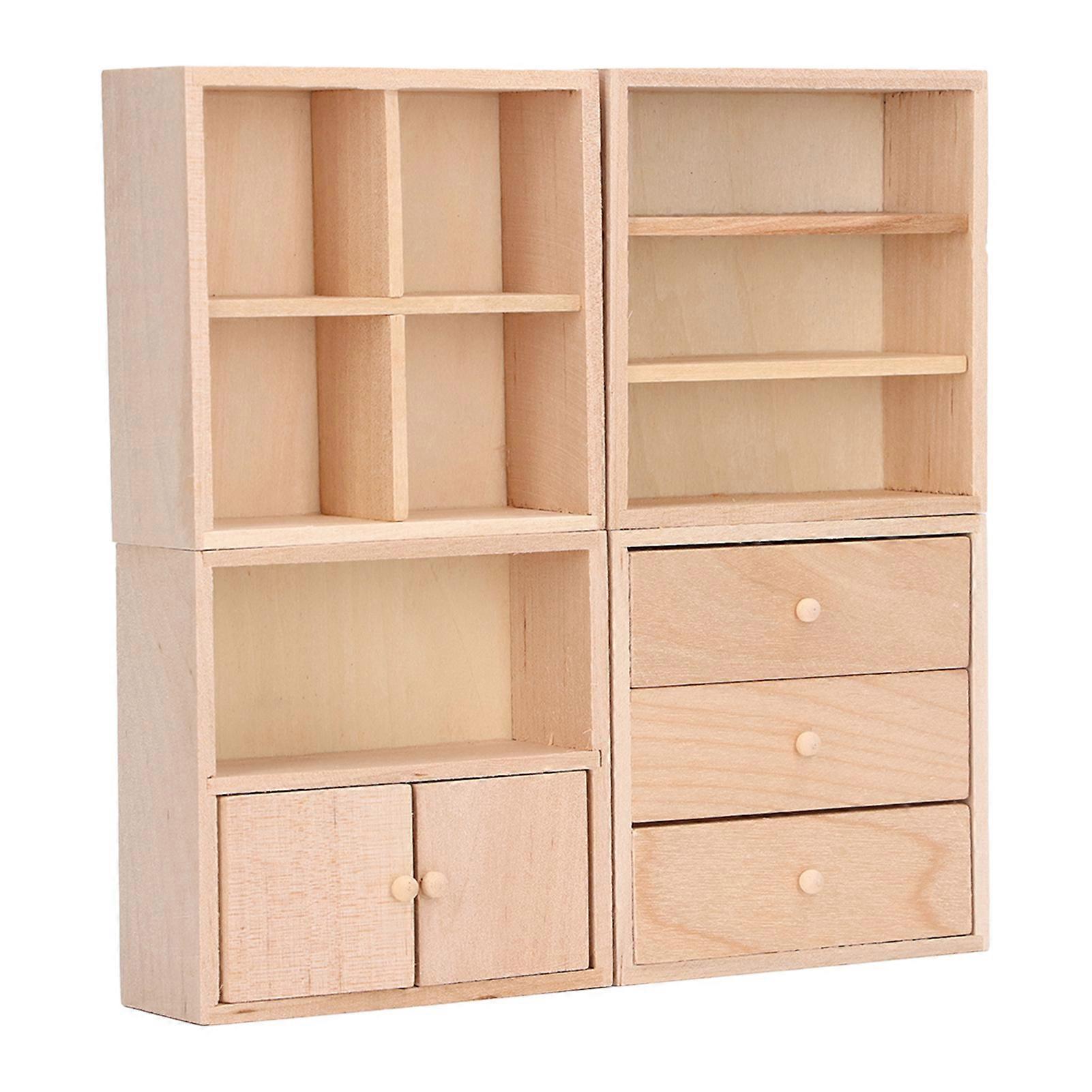 4 Pcs 1/12 Doll House Cabinet Set Simple Design Practical Lifelike Miniature Wooden Dollhouse Furniture Cabinet