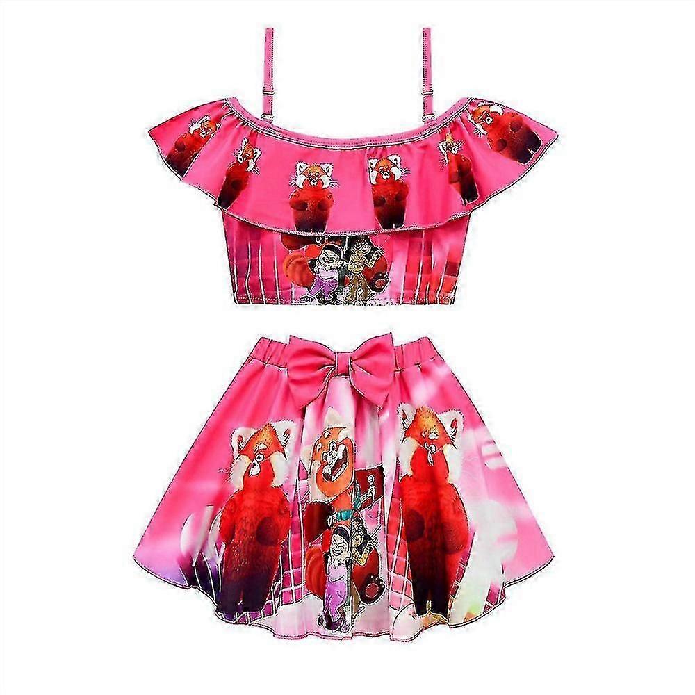 4-9 Years Kids Girls Turning Red Swimwear Top + Skirt Swimsuit