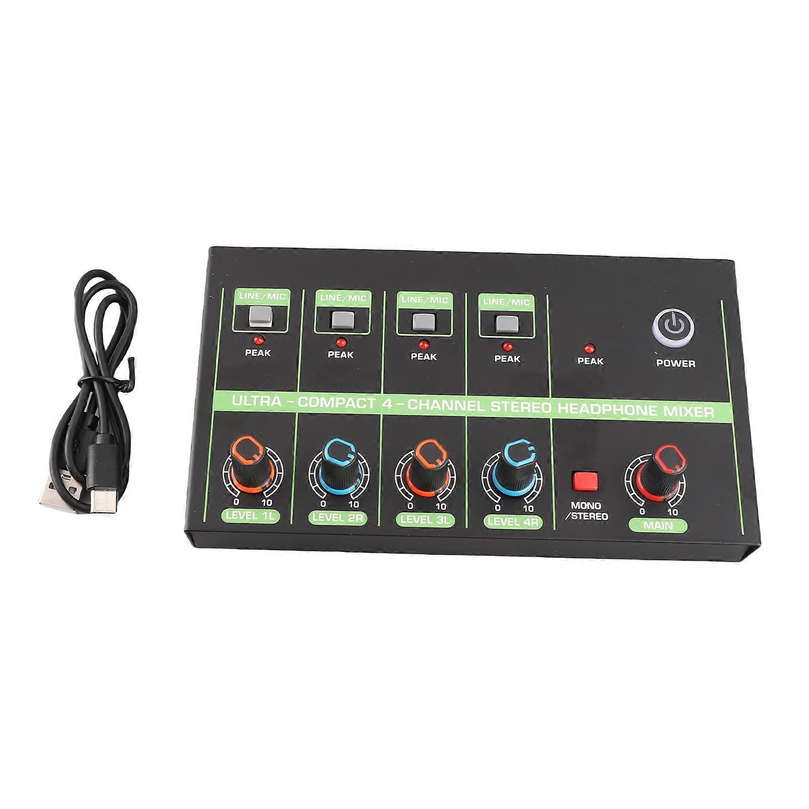 4 Channel Audio Mixer Low Noise Mono Stereo Line Mixer with LINE MIC Mode Switching for Microphones Electronic Piano Guitars Drums Computers