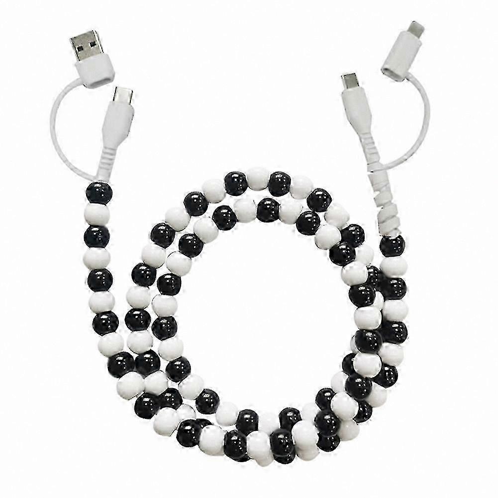 Product Name: 2-in-1 Beaded Data Cable Wire Material: PVC Length: 1 Meter Compatible Models: Compatible with Apple devices and universal Type-C interface Features: 1. 4-in-1 Multi-Function Design Supports multiple devices simultaneously, including various smartphones and gadgets 2. Flexible Cable to Prevent Tangling Tangle-resistant design, durable, stretch-resistant, wear-resistant, and knot-resistant for extended lifespan 3. Fast Charging Capability Delivers fast charging speeds to keep your devices powered and ready for use 4. Tangle-Free Portable Design Eliminates cable clutter with a smooth, easy-to-store design, ideal for travel 5. Durable Construction Made from high-quality materials and beautifully packaged, suitable as a gift 6. Stylish and Functional Design Features an attractive beaded design in colorful options, combining visual appeal with reliable charging performance Colors: Multicolor Beads, White Pearls, Light Green, Blue, Black and White Weight: 90g Package Dimensions: 17 x 14 x 2 cm Package Includes: 1 x Charging Cable