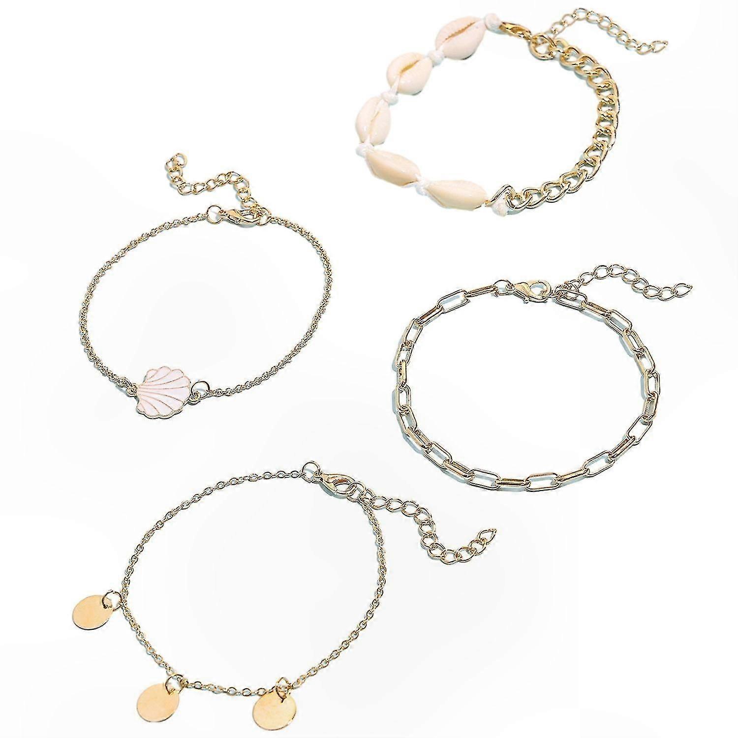 4 Pack Natural Shell Anklets Boho Adjustable Beach Style