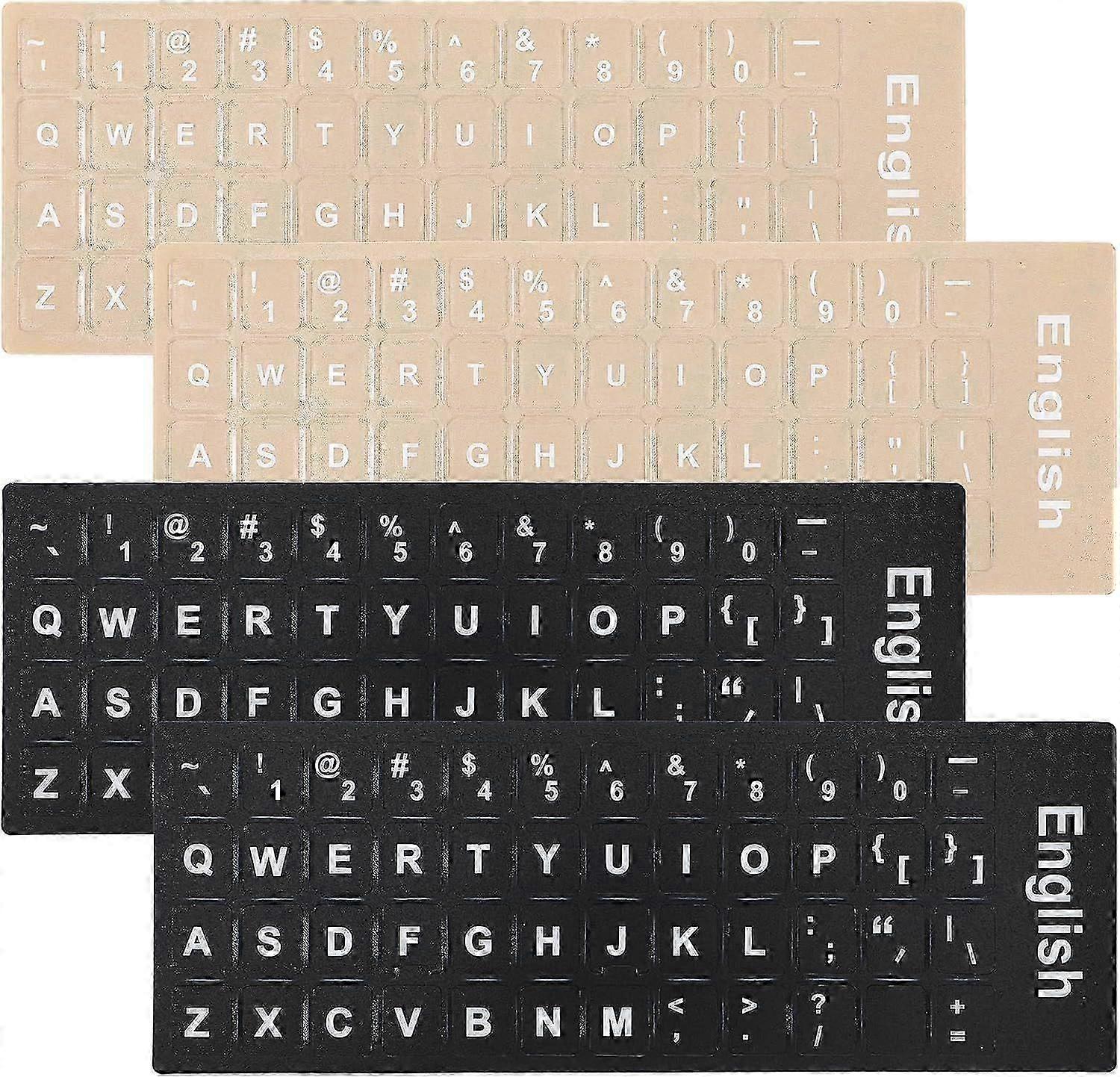 4 Pcs Keyboard Stickers Replacement Keyboard Letters Sticker Black & Transparent Background with White Lettering for Computer Laptop Notebook Desktop
