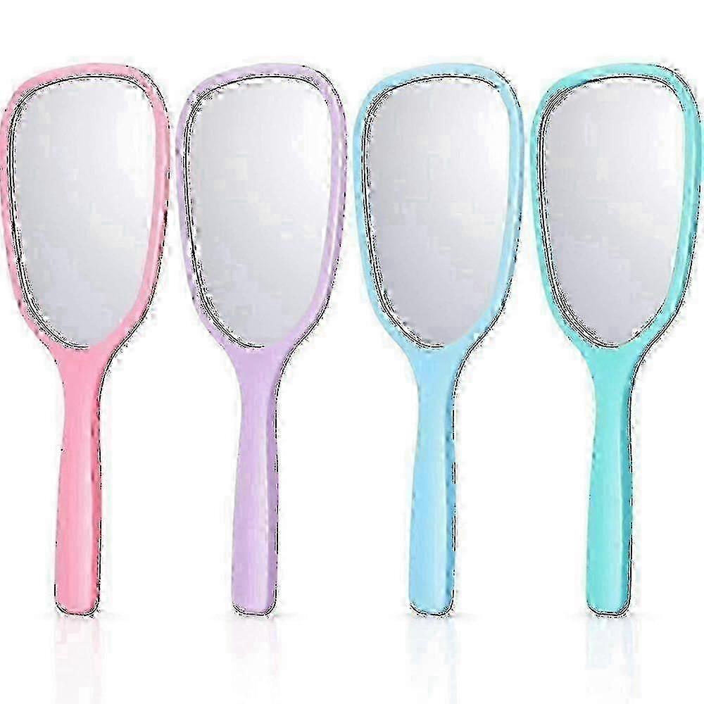 4 Pieces Handheld Hand Mirror Makeup Hand Mirrors With Handle Travel Makeup Mirr Colorful and bright colors set: the package includes 4 pieces of handheld hand mirrors in 4 bright colors, there are purple, pink, turquoise and blue, various fresh colors will improve your mood when you use them in daily life, sufficient quantity also allows you to share these practical and delicate items with your friends and family members Long-term service supplied: our makeup hand mirrors are composed of the quality mirror and a plastic frame, the main mirror feature a clear and smooth surface, will reflects a clear image of the entire face, not be deformed and easy to clean The plastic frame is durable, not easy to fade or break, will serve you for a long time Portable and handy handle: this is a handheld cosmetic mirror with a handle, it is very convenient to use and you can pick up the makeup mirror at will The handle is designed in a little bending shape, which is better for you to hold and grip, comfortable but not easy to fall off Lightweight and compact size: proper size is suitable for you to take and use, you can take it when you go out or go for a business trip, it will not take too much space in your handbag Wide applied occasions: as a makeup mirror it works great, while you can also use it for grooming tasks such as shaving, trimming eyebrows, hair styling or just to adore your beautiful self It is suitable for home, hair salon and beauty shop