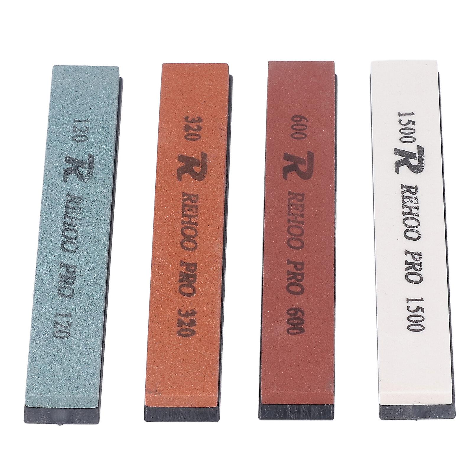4-Piece Knife Sharpening Stone Set with Fixed Angle Guide - Includes 120, 320, 600, and 1500 Grit Water Stones for Blade Sharpening