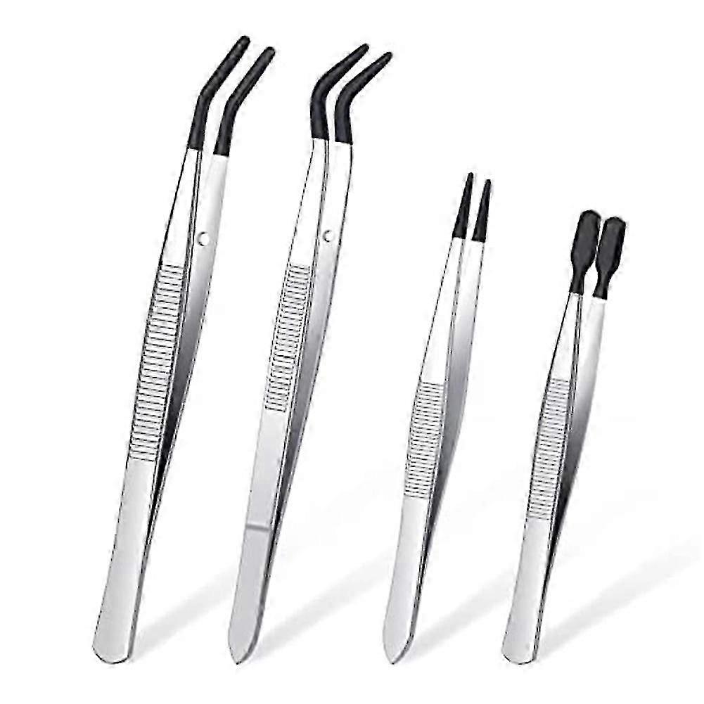 4 Piece Rubber Coated Tweezers Set with Fine Point PVC Tips - Tweezers for Safe Handling & Precision Work