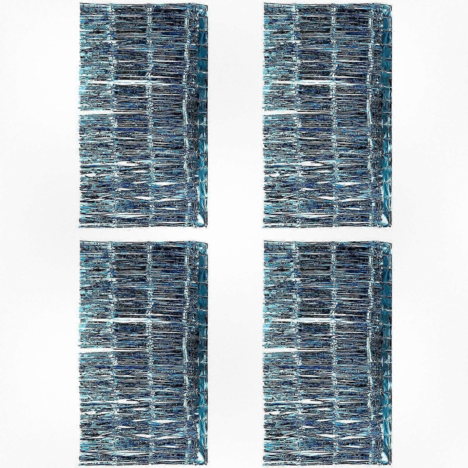 4 Pieces Fringe Tinsel Table Skirts for Rectangle Tables with Streamer Garland Curtains and Backdrop Decorations