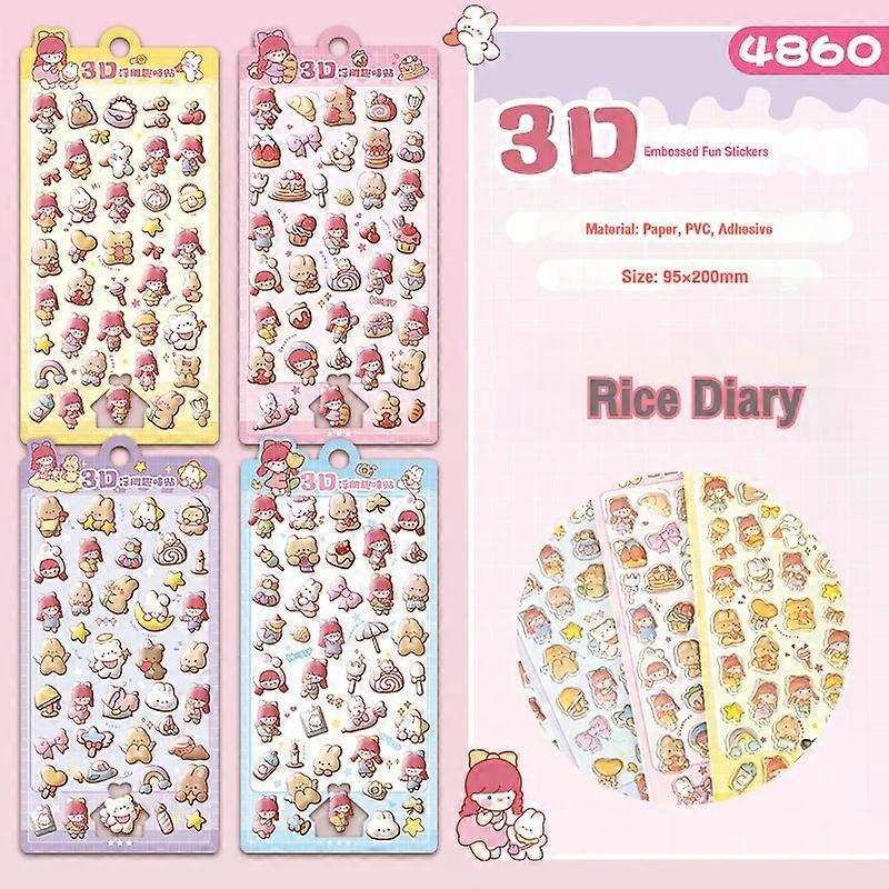 4 Sheets/Bag Capybara Panda Dinosaur CharacterTheme Outline 3D Sticker Set for DIY Scrapbook Phone Case Notebook Decora Craft