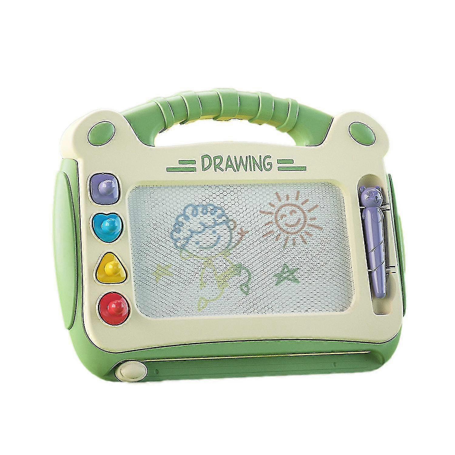 Features Color Drawing Board: This drawing board can be used perfectly as a preschool education drawing pad. It has 4 color zones-red, yellow, blue and green, providing much creativity for kids to express their artistic imagination with vivid and smooth lines. Moreover, 4 stamps add fun to create fun drawings. Inspire Creativity in Kids: This magnetic drawing board helps boost kid's creativity, imagination, and artistic ability. Your kid can express their own ideas in the drawings, practice letters and arithmetic through doodles It is an ideal toy that prevent children from indulging in electronic games. Safe To Use: This drawing board is made of premium ABS , with smooth rounded edges and a rounded pen head to prevent kid from being hurt, making it safe and secure. In addition, the strong back panel makes it more durable and comfortable to use. Easy To Erase: This magnetic painting board with sliding eraser is designed for quick erasing, allowing kids to gently slide and erase their drawings. Also, it comes in a cute, ergonomic shape for easy grip. No more worrying about your kids getting dirty stains on their clothes, hands. Portable Size: This doodle board is lightweight, it is easy to take it anywhere, ideal for airports, road trips, birthday, and as a christmas gift for little girls and boys. Specifications Package Include:1pc*Magnetic Drawing Board Note: Due to different personal measurement methods, there will be an error of 2-4 cm, please understand Thanks for your support