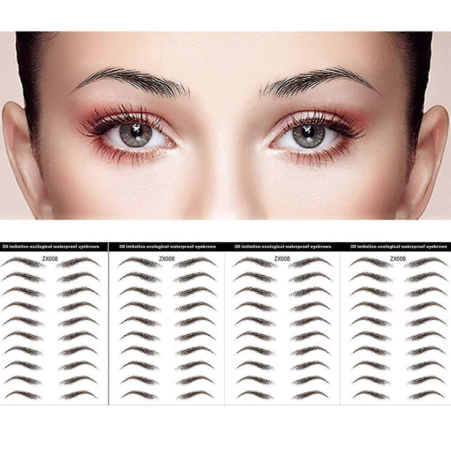 40 Pairs 4d Hair-like Waterproof Brown Eyebrow Tattoo Stickers, Long Lasting Natural Waterproof Bionic Eyebrow Transfer Stickers, Makeup Accessories