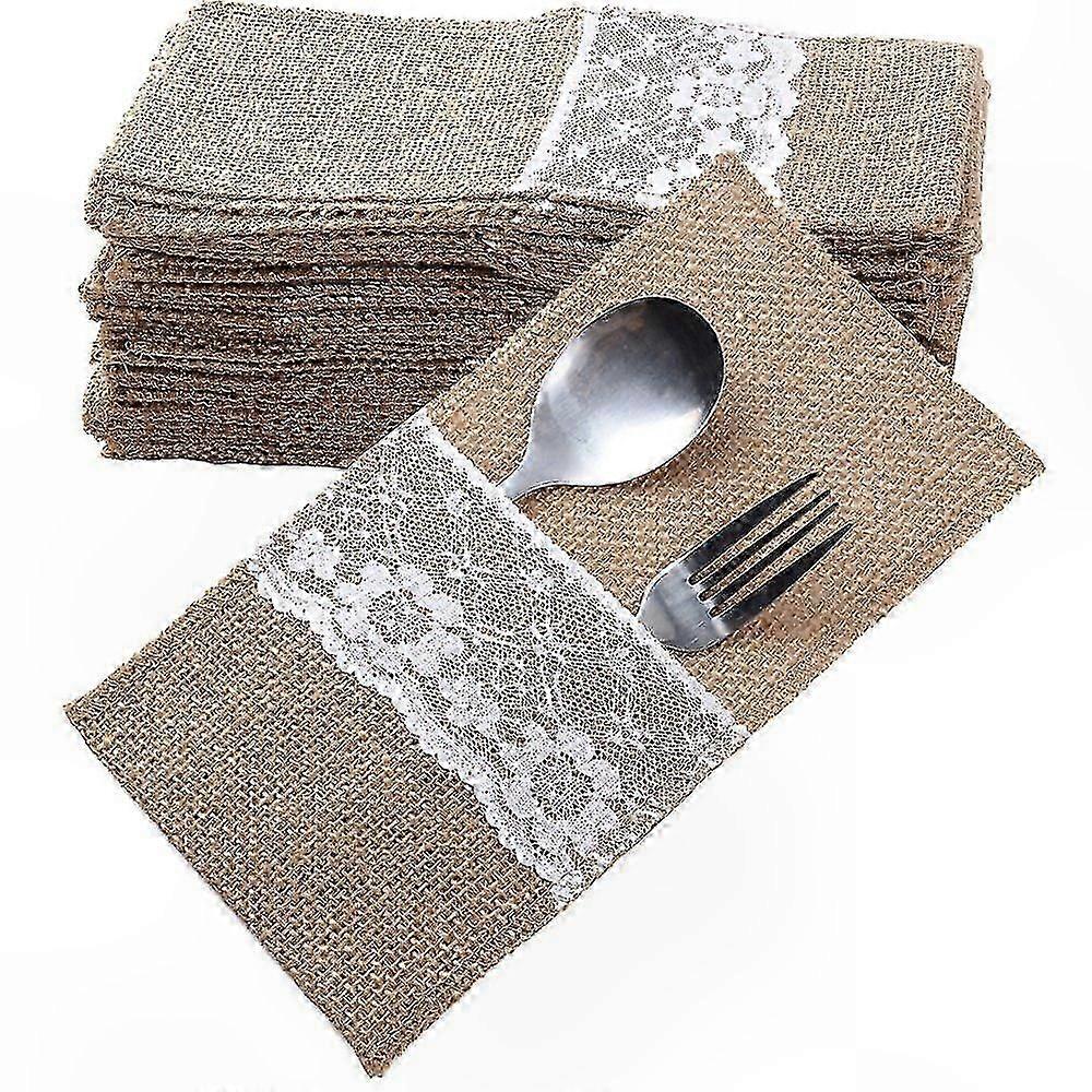 40-Pack Burlap Cutlery Bags with Lace Trim, 11x22cm Flatware Holders