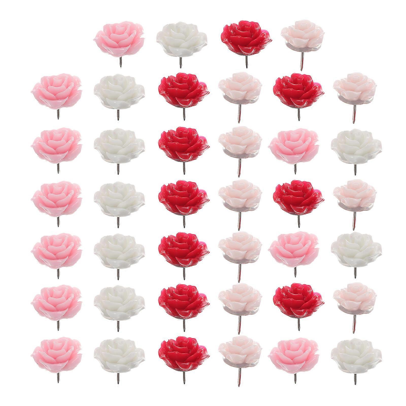 40PCS Red Flower Push Pins for Decor Resin and Steel Wire Thumbtacks for Office Supplies