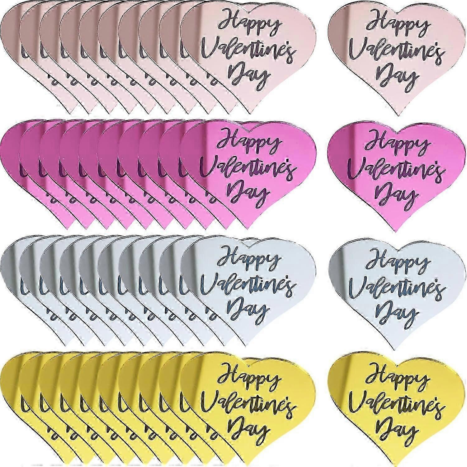 40 Pcs Happy Valentine's Day Acrylic Cupcake Toppers, Acrylic Cake Disc Mirror Heart Cake Topper Party Heart Decor for Valentines Day, Wedding, Annive