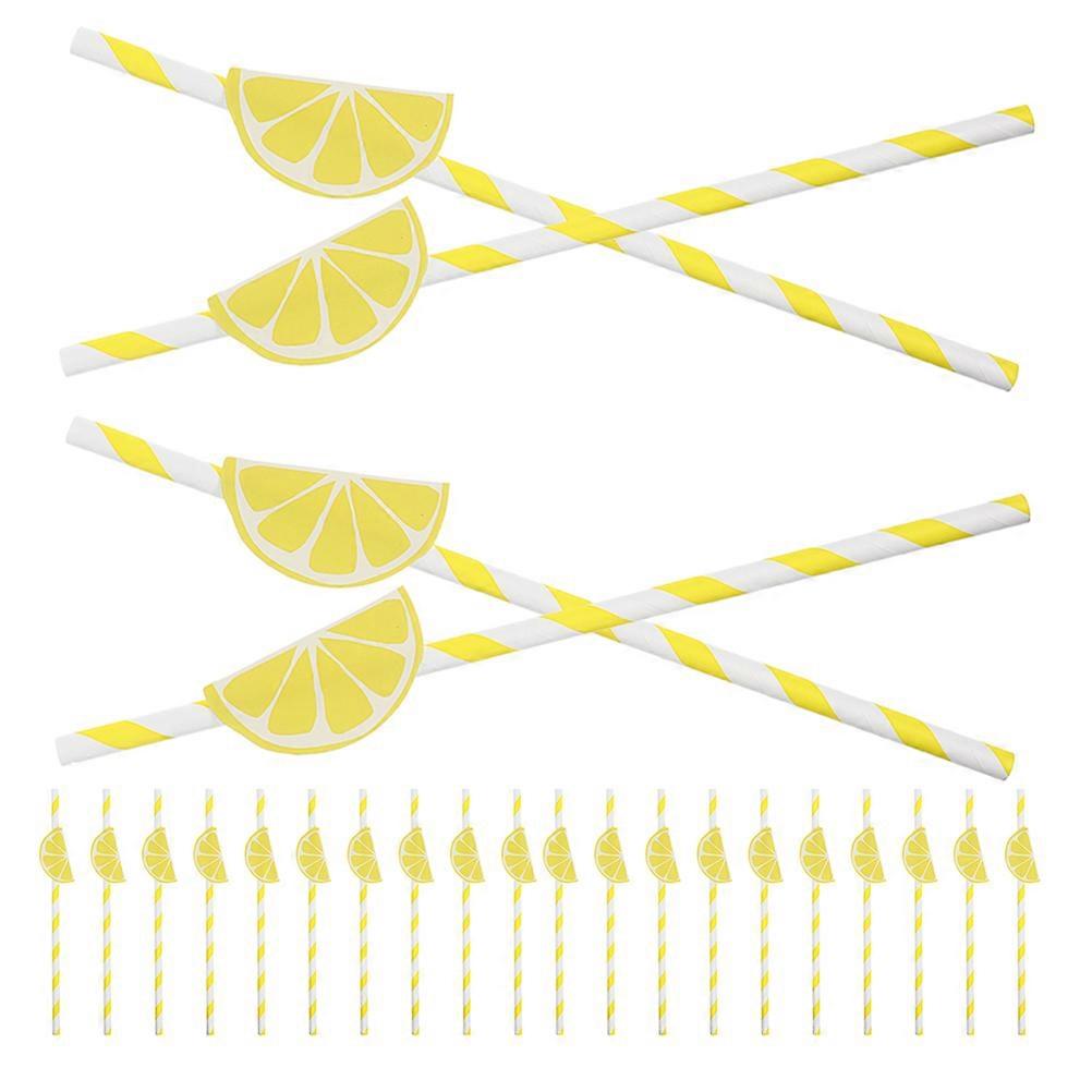 40PCS Lemon Striped Paper Straws for Birthday Parties and Celebrations – Stylish, Portable Drinking Straws for Drinks and Party Decor