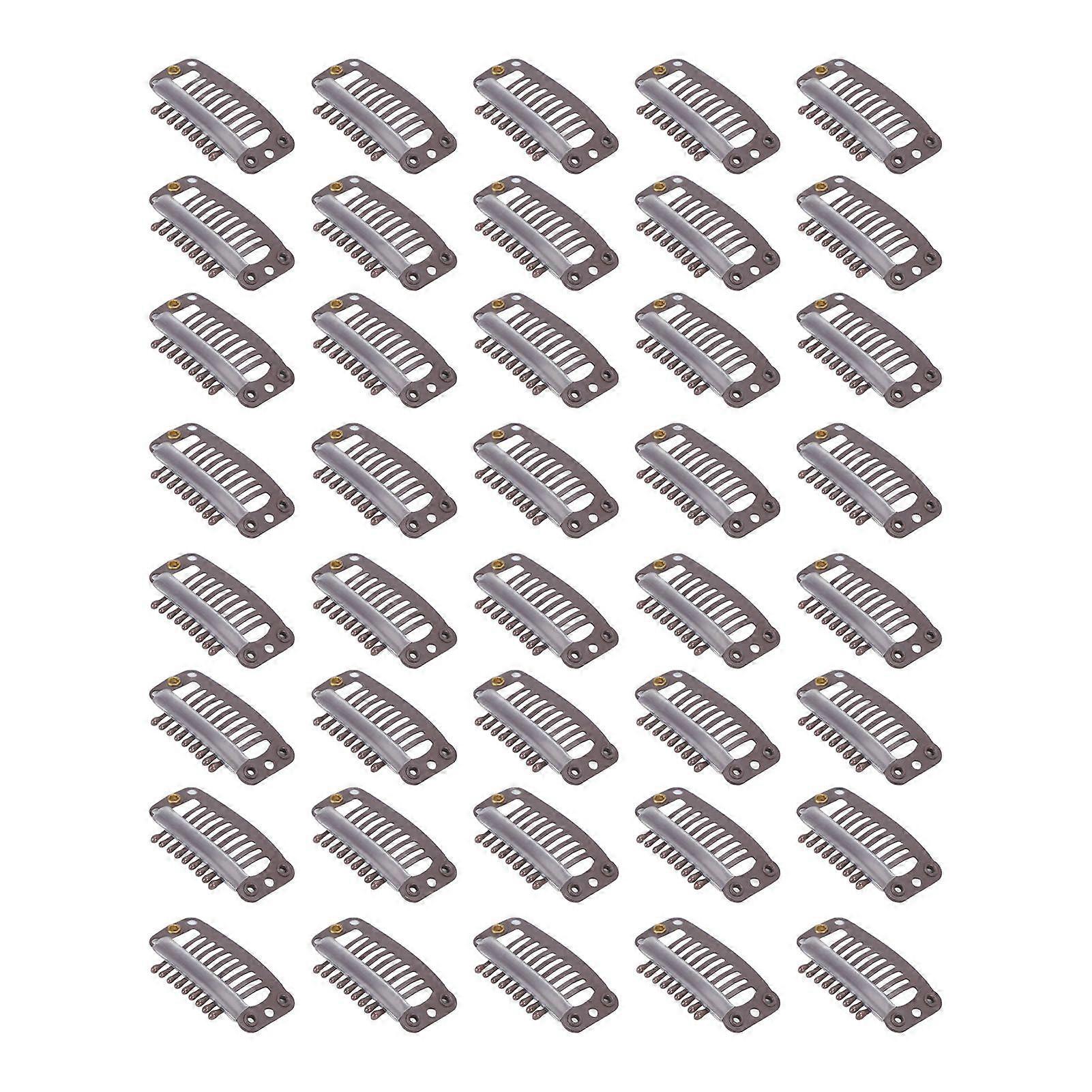 40pcs Hair Wig Clips Stainless Steel 9 Teeth Firmly Hold Hair Extension Hairpiece Clip 32mm Dark Brown