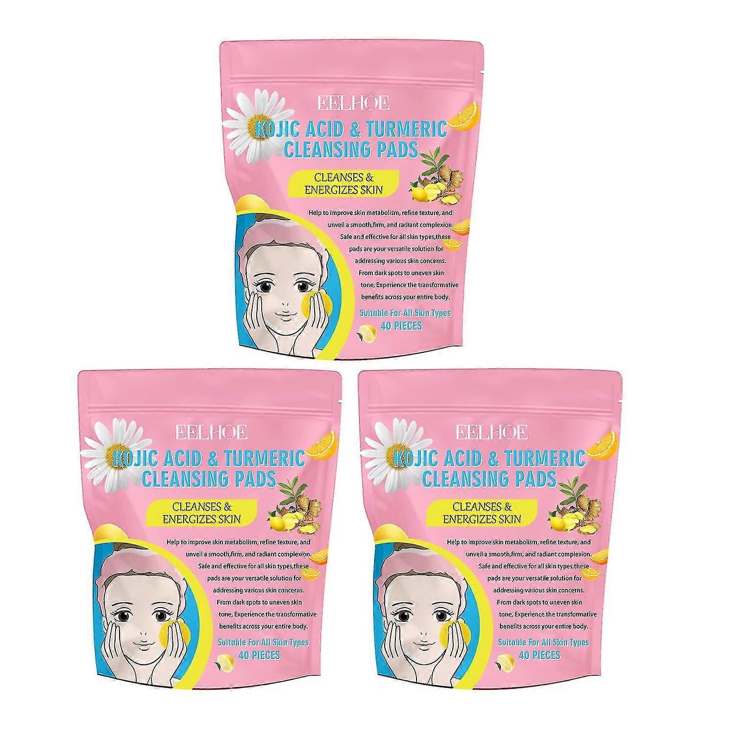 40-120pcs Turmeric Kojic Acid Exfoliating Cleansing Pads Fades Dark Spots Exfoliates Skin Pads Facial Care Supplies