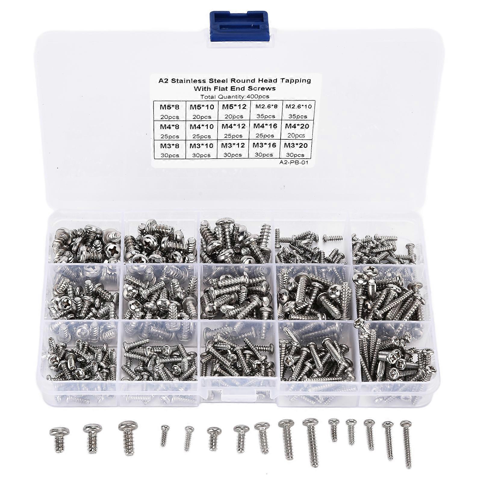 400Pcs Stainless Steel Screw Cross Pan Head Self Tapping Screws Assortment Kit Fastener