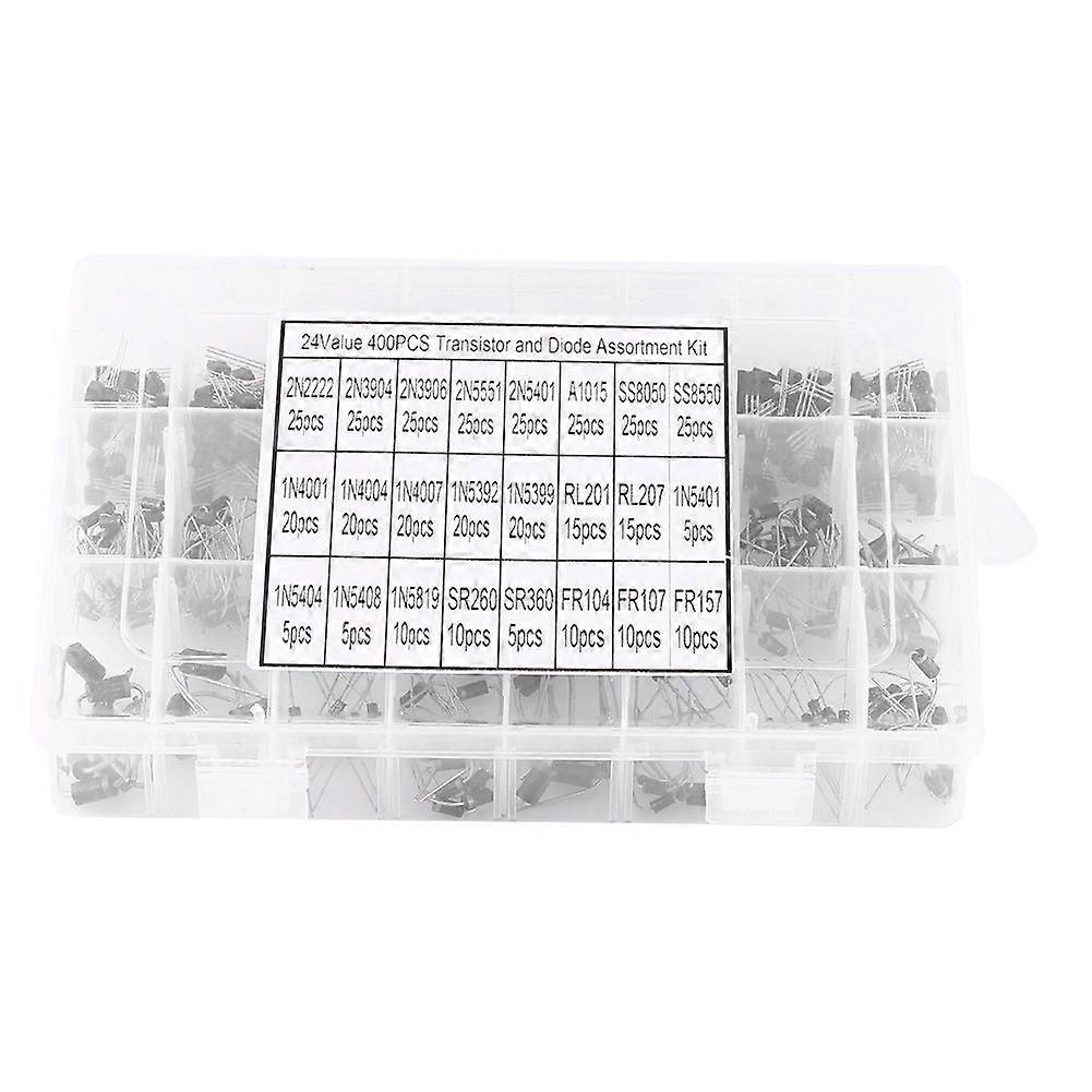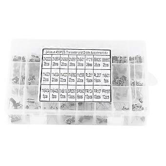 400pcs 24 Values Transistors and Rectifier Diodes Assortment Set With Storage Box