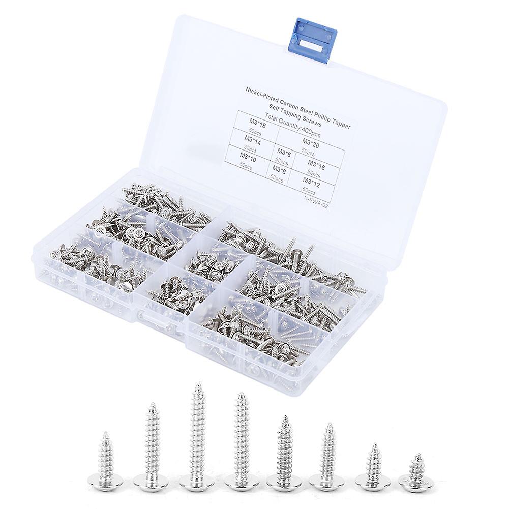400pcs NickelPlated Carbon Steel Self Tapping Screw Precise Tapping Screw Set M3