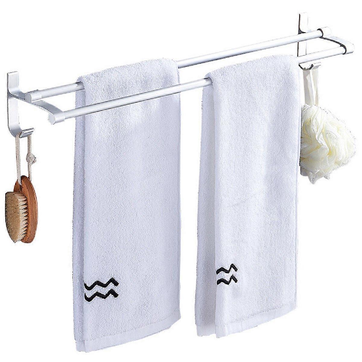 40/50/60cm Double Bar Towel Rack Shelf Bathroom Wall Mounted Shower Towel Holder Aluminum Hanger