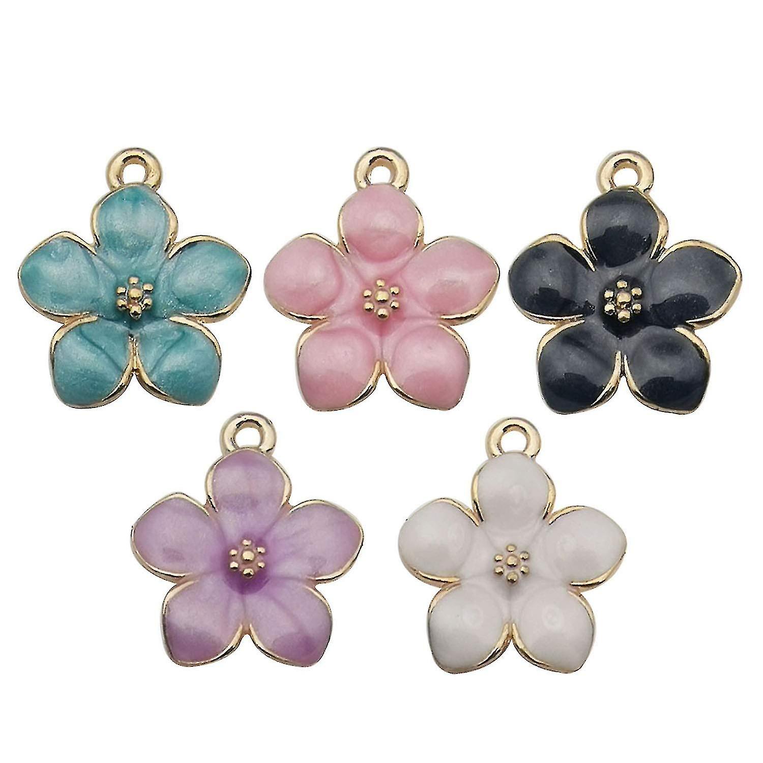 40pcs Gold Plated Enamel Cherry Blossoms Flower Charms Pendant For Jewelry Making Necklace Bracelet Earring Diy Jewelry Accessories Charms